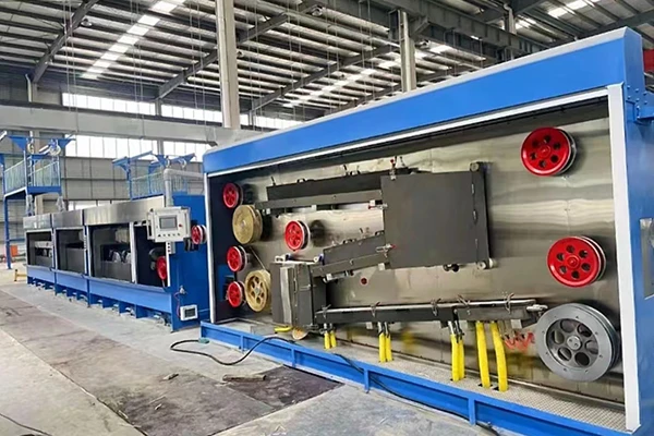 3.该机吸收国外**技术,采用分电机非滑动式连续拉线,并且鼓轮浸入拉线乳化液中拉制铜线,主机各拉线鼓轮减速机、拉线并分别配备一套润滑、冷却循环系统。
